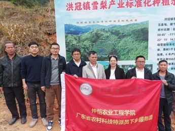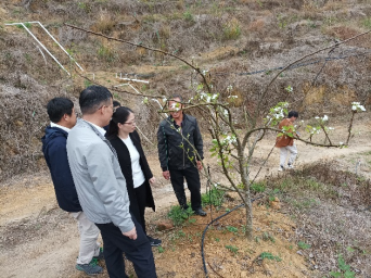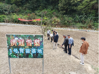 随后,农村科技特派员团队与洪冠镇领导及驻镇帮扶工作队一同前往垌头村雪梨种植示范基地调研雪梨种植情况和雪梨育苗情况,现场就雪梨种植过程中的问题提出改进意见,包括水肥管理、病虫害防治等。