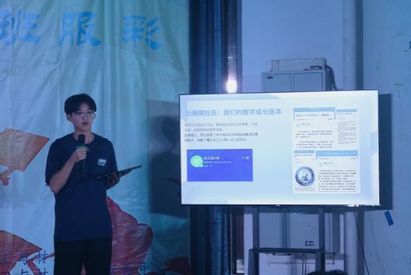 各班代表通过PPT展示各自班级易班文化建设成果和班服设计理念。应化251班班服融入原子符号,致敬科学精神。高分子251班以字母和结构单元为造型,表达专业热爱。材化251班用鲸鱼形象展示归属感和海洋保护理念。化工251班以藏青为底,加入实验元素,象征探索钻研精神。