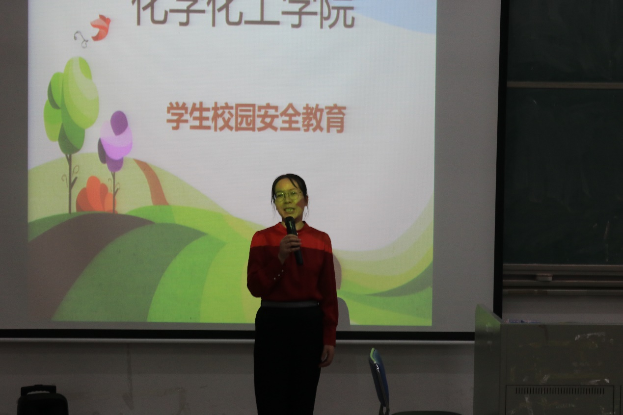 10月29日下午,化学化工学院在白云校区D2小礼堂开展安全主题教育会。化学化工学院党总支副书记严丽纯、辅导员刘亚宁、徐冠东出席本次了本次安全主题教育会。化学化工学院全体学生干部及各班级班长参加了本次安全教育会。