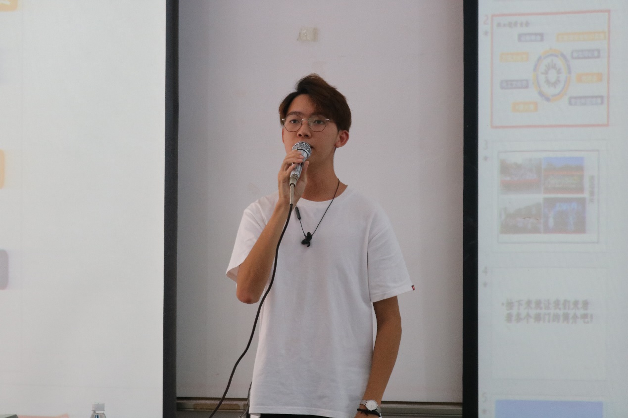 接着我院团委第二副书记陈智松、学生会副主席贝汉章以及新闻中心主任黄梓照的一一发言,他们用幽默、风趣的语言向新生介绍我院三大机构的各个部门。图文并茂的幻灯片、有声有色的快闪视频快速吸引了在座新生的注意力并赢得了他们热烈的掌声。
