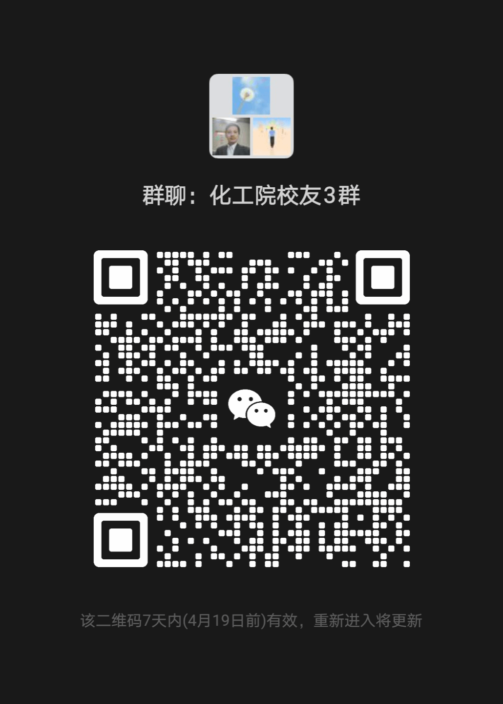因化工学院校友一群二群(通知和共享资料下载)人数已满,化工学院16级以后的校友入校时都已建全年级微信群(年级校友群)可以直接联系辅导员,之前没有大群学院校友都可以加入化工学院校友3群(如下二维码),群内可以联系学院老师申请获取返校时展出的旧照片、学院简介、最新同学录通讯录(含部分校友工作单位)等资料: